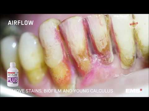 Gum and tongue cleaning with Erythritol Plus Powder from EMS (a renowned quality dental brand from Switzerland). For the first time, the water in this Airflow device is warmed to a noticeable temperature.