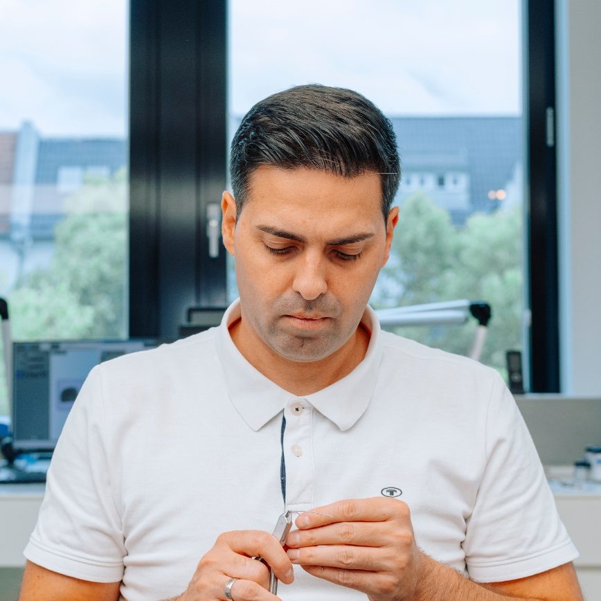 Ästhetik und Schonung des wertvollen Zahnmaterials des Patienten sind bei allen Behandlungen mit Veneers bei KU64 Berlin oberstes Gebot. Bei Planung und Ausführung der Behandlung achten wir gleichermaßen auf Präzision, optimale Verträglichkeit, Funktionstüchtigkeit und Langlebigkeit des Zahnersatzes sowie auf das perfekte Zusammenspiel mit dem Zahn und dem umgebenden Zahnfleisch. Dadurch profitiert Ihr Lächeln! Die Zahntechniker und Zahntechnikerinnen von KU64 Berlin fertigen alle Veneers in Handarbeit im hauseigenen Labor an und passen sie individuell an Ihre Zähne an.
